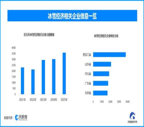 天眼查专业版工商信息数据显示,截至目前我国现存在业、存续状态的冰雪经济相关企业超2.6万家。其中,2025年新增注册相关企业超3500余家,从企业注册数量趋势来看,近五年间,除2022年稍有下降外,冰雪经济相关企业的注册数量大体呈现出增长态势,并在2025年达到顶峰。